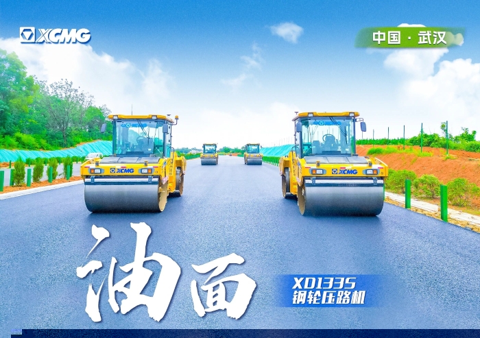 紧跟着摊铺工作上场的,是我们的老朋友——4台XD133S双钢轮压路机,由它们进行路面初压及复压。这款压路机诞生之出就备受瞩目,已经征战过各类重大工程;尤其它的柔性行驶起停控制技术,能有效消除整机对路面的推挤,避免产生拥包,在提高路面平整度方面的实力有目共睹。