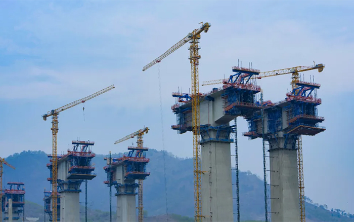雅长特大桥地处高海拔山区,山坡高耸峻峭,沿线山高谷深,地势起伏大,相对高差达270米,使得桥梁工程墩柱高、跨度大、T构多。面对超高墩施工风险高、技术要求高、作业场地狭窄等难题,十余台星空官网XGT6013-6S1、XGT6515-10S1凭借精准、高效、安全的吊装性能,将桁架钢筋、箱梁护板等部件吊至百米高空,为项目建设提质增效。