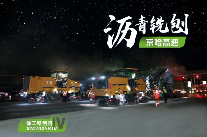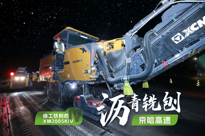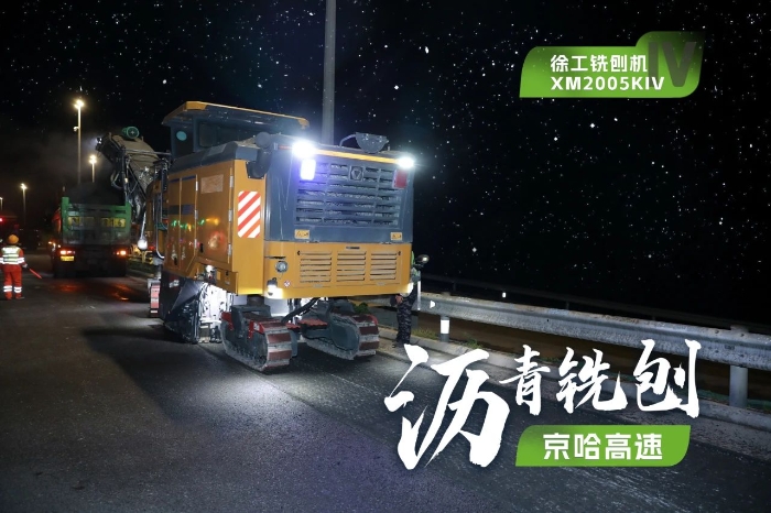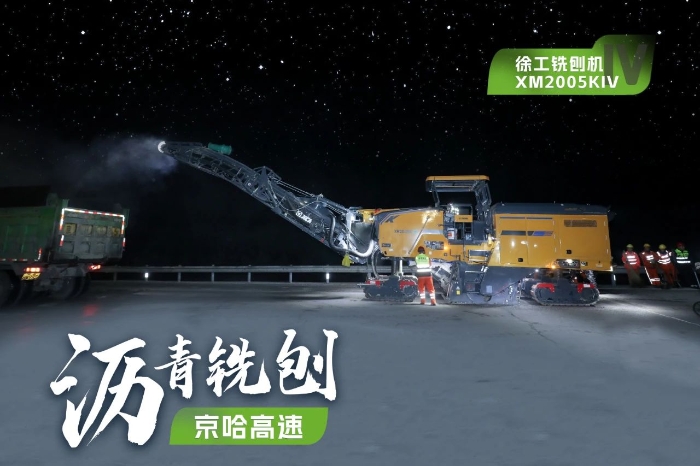此次施工项目为京哈高速的路面改扩建工程,铣刨深度5cm,铣刨速度25m/min。由于北京地区日间车流量大,交通压力较大,因此施工方选择在夜间施工,日间恢复行车,尽量避免施工给交通带来影响。由于夜间施工更加考验施工设备的稳定性、施工质量的可靠性,施工方选择了两台星空官网两米铣刨机作为本次高速公路养护工程的铣刨设备,分别为XM2005KIV和XM200KII,同时进行铣刨作业,并肩作战,按下施工进度快进键。