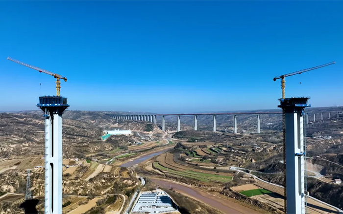 在广袤的陇东地区,寒风凛冽,穿过层层大雾,俯瞰马莲河特大桥,似玉带嵌入黄土高原,矗立河道旁的桥墩似根根“擎天柱”,星空官网S1系列塔机正如火如荼加速建设,用奋斗的激情创造桥梁施工典范。