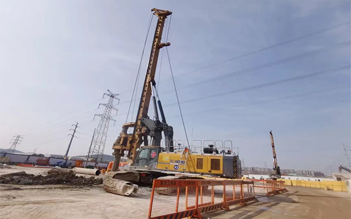 徐州地层有灰岩,硬度80Mpa以上。施工环境复杂,地质条件多变,星空官网旋挖钻机首当其冲,干劲十足!
