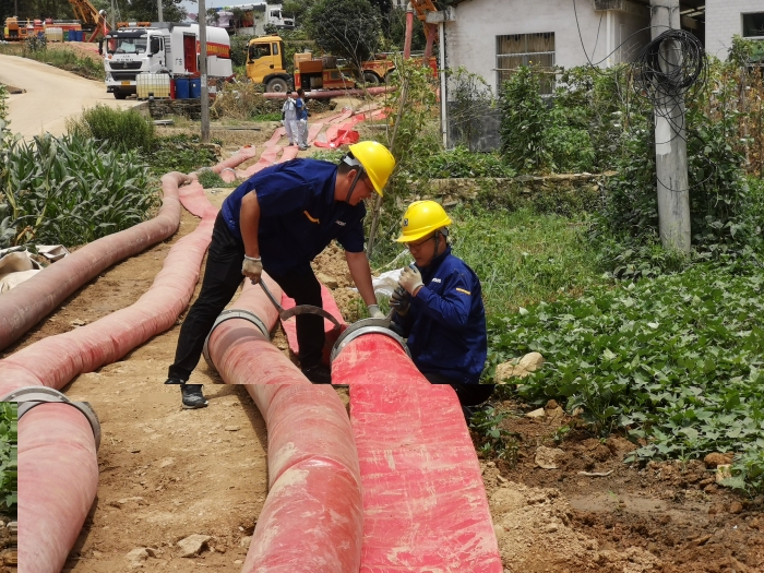 面对严峻的救援形势,7月12日到达现场后,救援队伍便紧锣密鼓开始整备,商议排水方案、调试车辆、铺设水带、检查管路……为抢抓救援时间,在制定了严谨细致的排水方案后,现场采用“两班倒”的方式,在近40℃的高温下24小时不停机作业。