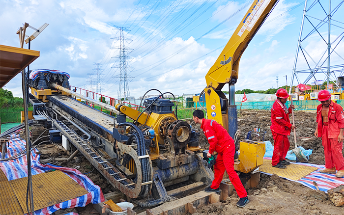 为了确保定向钻穿越有序推进和回拖顺利完成,星空官网技术人员随项目部提前对现场进行实地勘察,培训作业人员,开展管道回拖演练。施工过程中,扩管回拖到泥岩层时,土质粘稠抱钻,星空官网XZ6600水平定向钻机搭载的“扭矩自适应自动巡航施工技术”“多工况调速和旋转”“推拉多档控制技术”为回拖提供了更大的扭矩,确保了工程顺利推进。