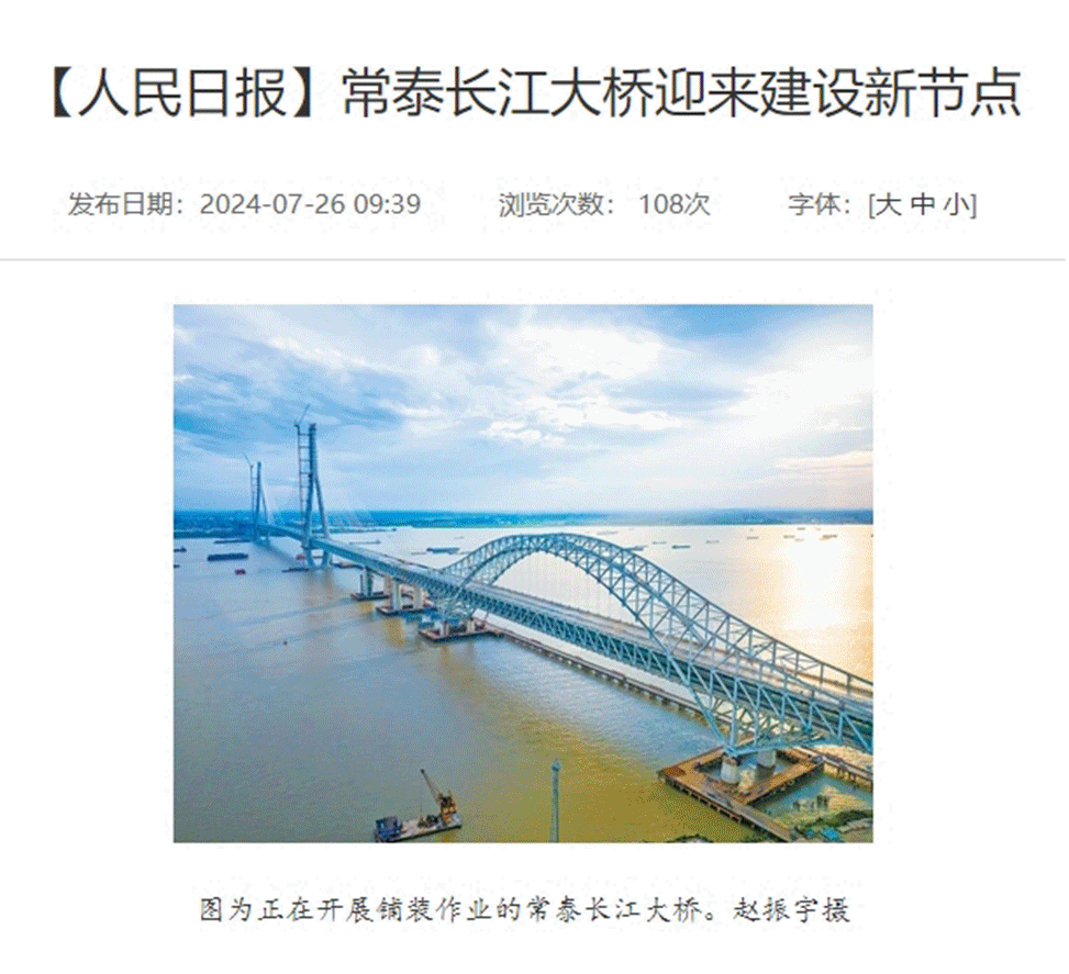 常泰大桥近日迎来了项目新突破——