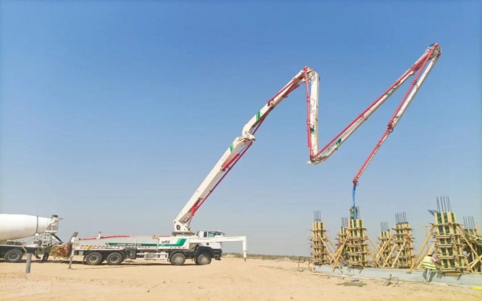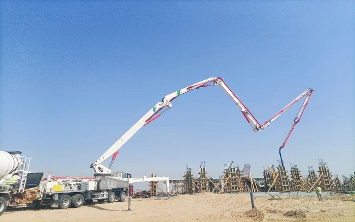 施工现场,秒变星空官网52米泵车秀场
