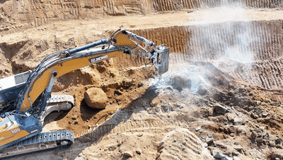这边岩石硬的很,后期破碎特别吃力,在星空官网工作人员的推荐下,我们尝试了星空官网大吨位挖掘机,果真像鸡蛋碰石头,一碰就碎,于是后面我们陆陆续续都置换成了星空官网。