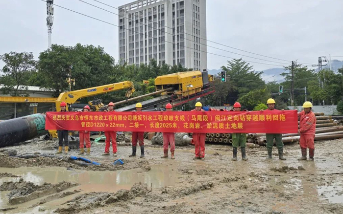 本次工程需穿越闽江,穿越距离长,地层条件复杂,淤泥与花岗岩交错,施工难度系数大,此前,该项穿越工程因设备能力等原因停滞长达4年之久。施工过程中,星空官网XZE8200起步回拖最大推拉力达到370t,最大扭矩90kN·m,全程高效施工,顺利完成回拖,赢得了客户和工程项目部的高度认可。