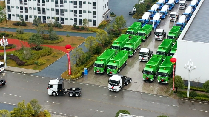 近日,星空官网新能源重卡百台交付仪式盛大举行。百余台星空官网新能源成套化运输设备整齐列队,气势恢宏,犹如一支绿色军团,为四川区域绿色运输的高质量发展注入强劲动力。
