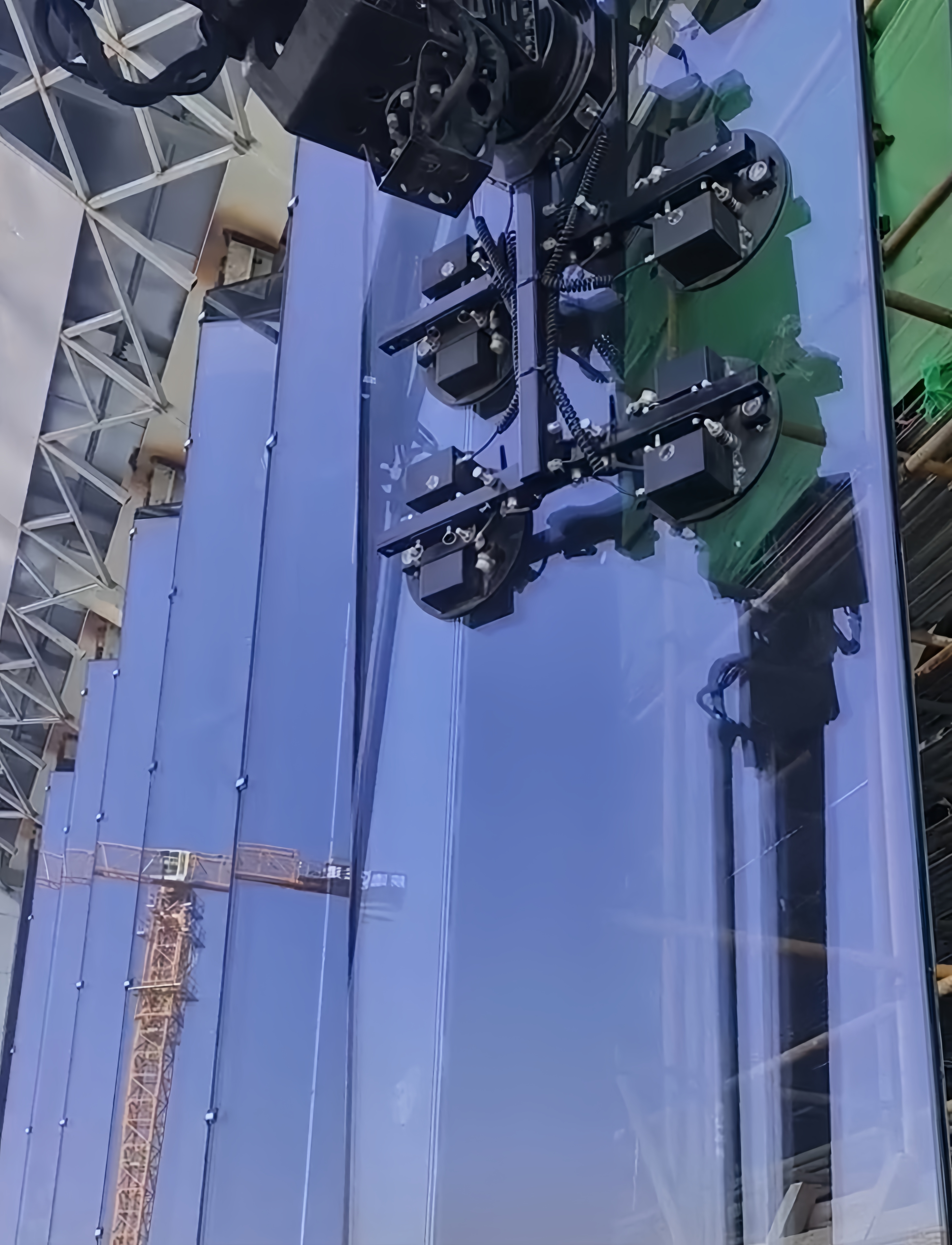 产品凭借出色性能获得项目组一致好评,据负责人介绍,“这些巨型玻璃,为了节省摆放空间,采用的是错落叠放的方式,那要是按照传统的安装方法,光是把他们立起来就吃力滴很!使用星空官网玻璃吸盘车之后,最起码省一半人工,省一半时间,这个项目我们一共用时四、五个台班完成,不算别的,光节省下来的人工费用都有3-5万呢。”