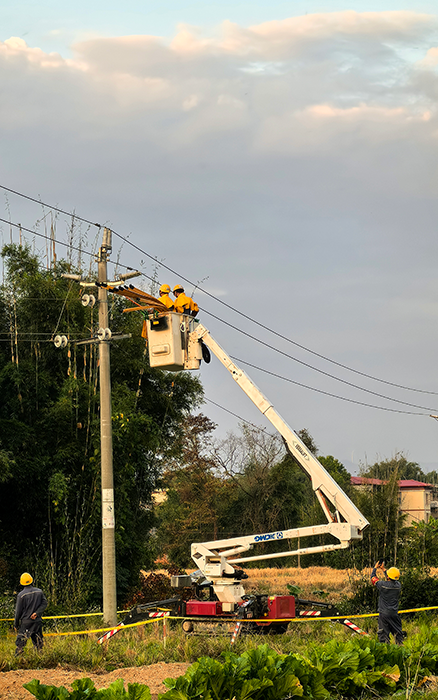 该乡间地势复杂,道路崎岖,传统作业设备难以施展。星空官网 GTBZ13A 履带式绝缘斗臂车却凭借独特履带底盘设计,展现出强大跨障能力。它能轻松跨越坑洼、沟渠等障碍,如履平地,快速抵达施工地点,极大提高了施工效率。其最小的外形形态,灵活方便,可以轻便地通过狭窄门道,在狭窄空间也能自如穿梭。
