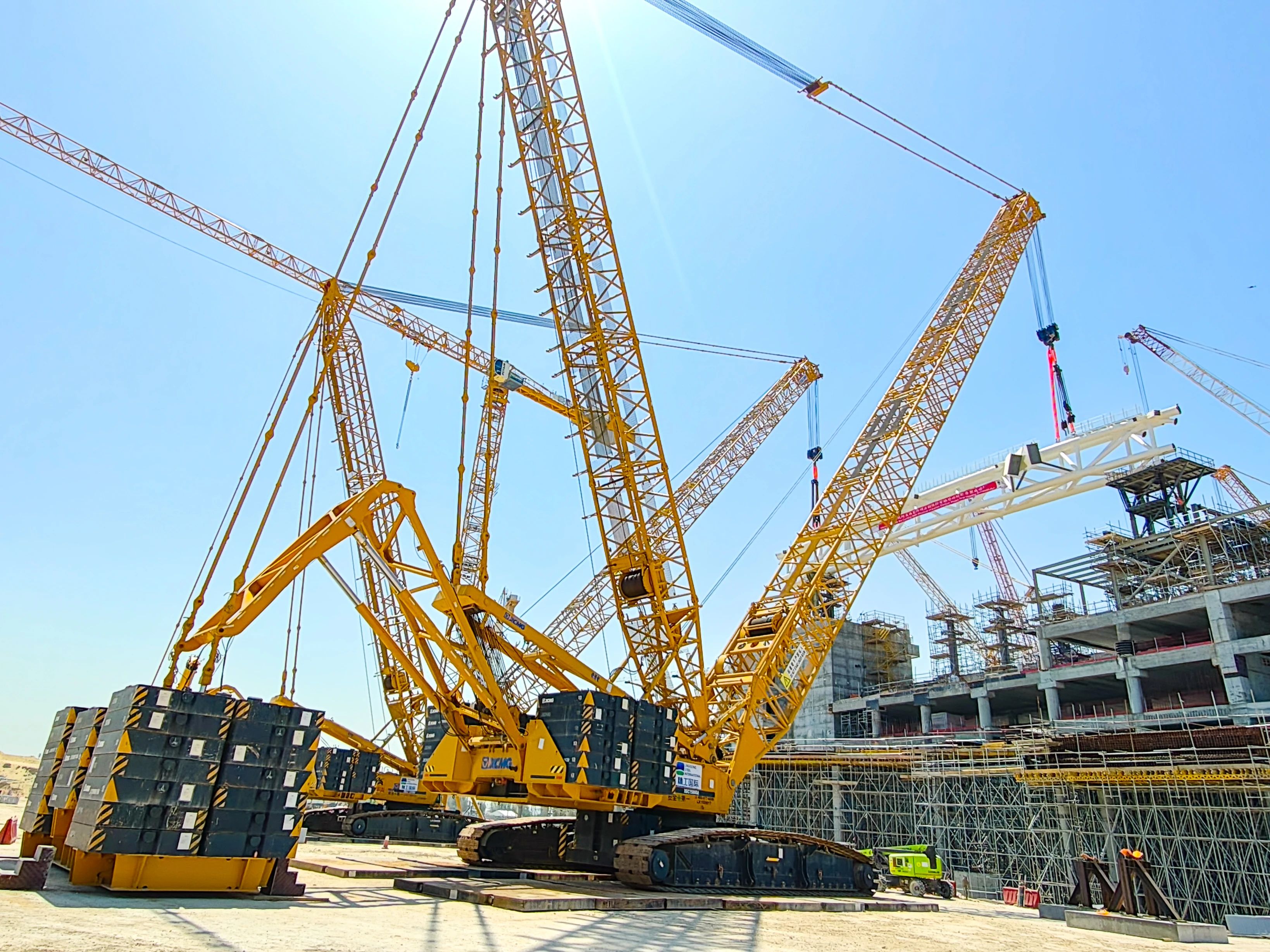 星空官网两款大吨位履带式起重机——XGC15000A(1000吨级)与XGC12000(800吨级)强势出击。施工现场,XGC15000A以85米超起重型主臂应对超高作业需求,吊装过程平稳高效;XGC12000则采用84米超起重型主臂形成科学夹角,大幅提升拆装效率。
