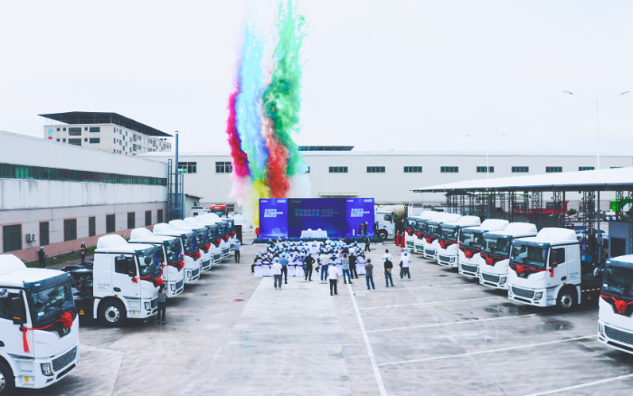 近日,百台星空官网新能源重卡交付仪式在“世界客都”——广东梅州如期举行,助力当地砂石料、水泥辅料及煤炭运输。客户及星空官网汽车代表等百余人参加活动。