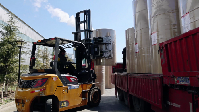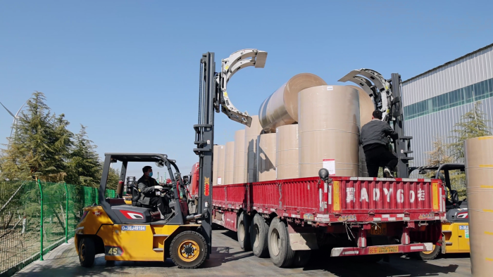 在华北某大型纸卷厂内