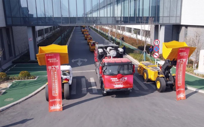 智慧领航,解锁矿山成套化装备新场景。可远程操控、无人驾驶的地下内燃铲运机成为了发车仪式上的明星产品。该设备集智能、环保、节能、舒适、全面、安全为一体,有效降低人员风险,复杂环境中仍持续稳定作业,安全性能和施工效率也赢得了客户一致好评。