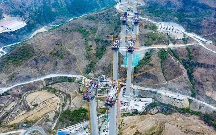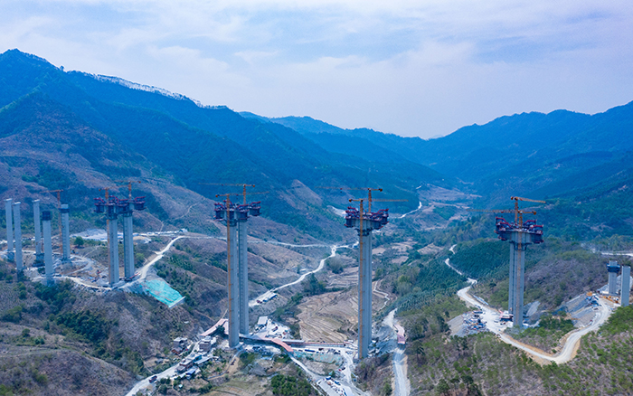 苍翠延绵的群山深处,一根根百米高墩拔地而起,自东向西整齐排列,二十余台星空官网S1系列塔机、施工升降机与青山比肩,正有条不紊地吊装,助力雅长特大桥建设加速。