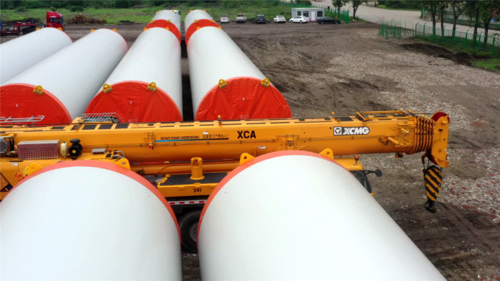 在繁忙的港口,长40米、重100吨的风力发电塔筒摆放整齐,等待着一次关键的腾挪,吊装空间局促——塔筒摆放距离较近,荡距空间严重受限,这是对起重机性能与操控的极致考验。星空官网G2代起重机XCA200G8-1从容入场,以实力宣告:空间,绝非限制。