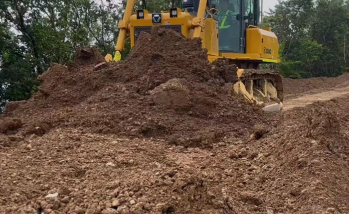 纯土松软区:推土铲精准控制土方厚度,避免塌陷