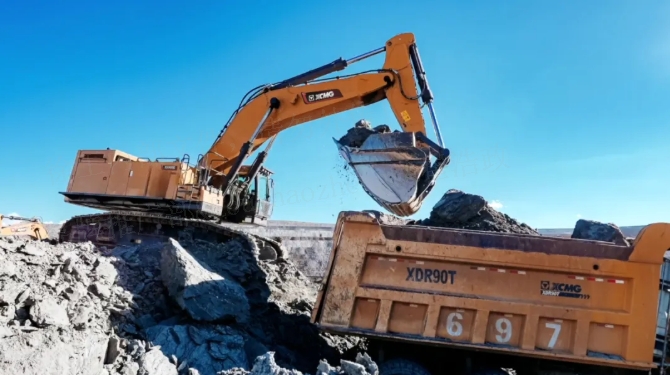 新机标配6.2m³加强铲斗,采用变量液压泵技术,斗杆挖掘力提升7%,斗容提高15%,有效提高重载效率。在内蒙矿山,XE900G Pro搭配100吨级矿车,装车时长3分钟左右,工作效率大大提升。