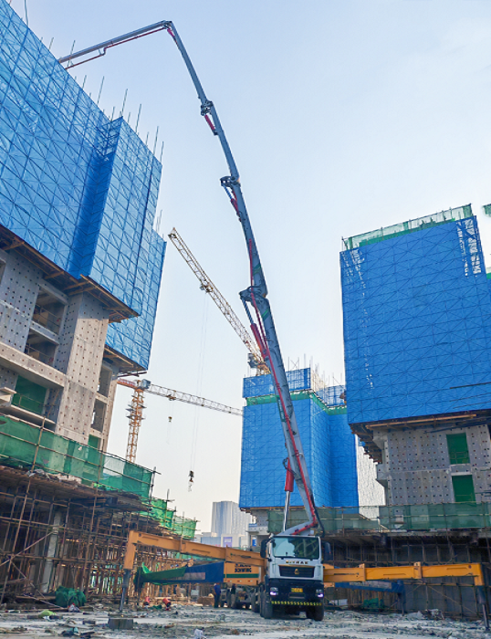 在高铁新区超高层项目中,258 米地标建筑核心筒浇筑是关键环节,对泵车的覆盖能力和精准度要求严苛。星空官网72米泵车以71.1 米有效长度,轻松完成了这一艰巨任务。智能防倾翻技术、智能臂架技术等充分展现了 “中国高度” 背后的精准实力。
