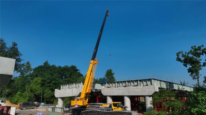 湖北通修高速公路建设现场,星空官网G2代50吨新能源起重机正展露锋芒。14米长、重达1吨的桥梁竖梁凌空而起,500斤横梁于视野盲区精准对位——这是对起重机微动性与操控性的极限考验。