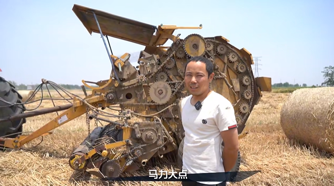 我带的是 2.2 米的拣拾打捆机,跨区去做打包作业,效率那是没话说,比之前用的机器快多了。