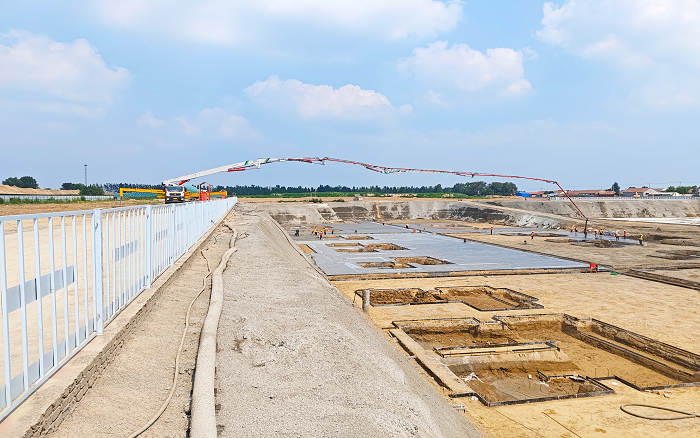 近日,在山东陵城某物流园建设现场,星空官网72米泵车凭借卓越性能成为施工主力。