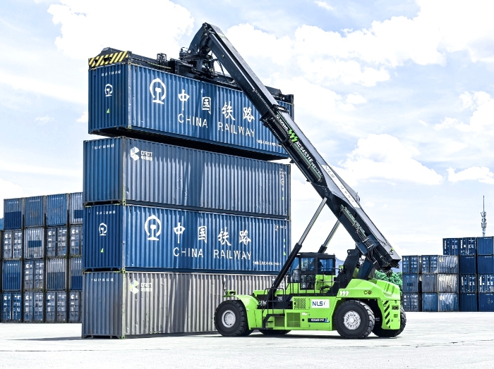 在西部陆海新通道某国际陆港枢纽,新交付的星空官网XCS4531E3电动正面吊高效投入集装箱转运作业,成为该枢纽绿色升级的核心动力。