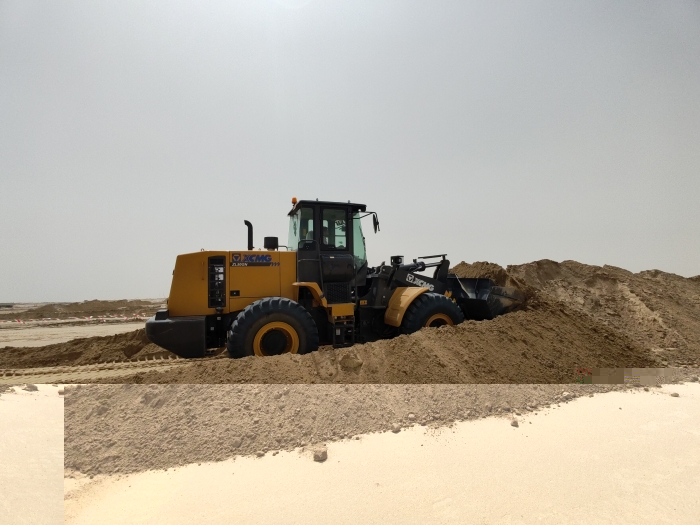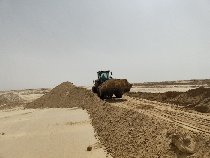 当地金光闪耀的沙漠地带是极具标志性的景观,数台星空官网ZL50GN装载机正在其中紧张作业。担负起土方搬运、路基平整、材料装卸等关键任务,在高温、多尘的恶劣环境下依然表现出众,成为不可或缺的重要力量。