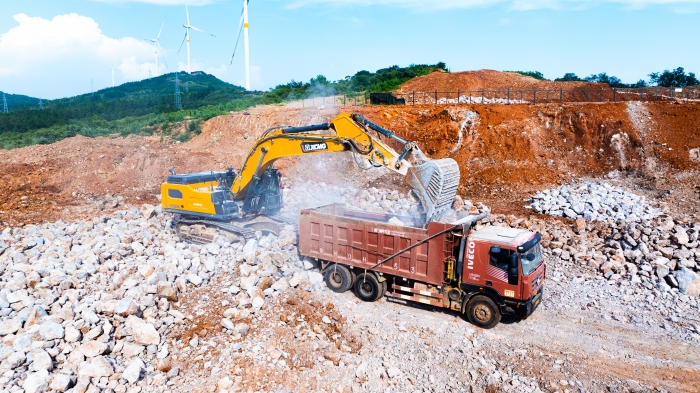 湖北宜城矿区深处,白云岩资源富集,开采作业正酣。星空官网XE500GK液压挖掘机以主力姿态投身于繁忙的开采队伍当中,以卓越性能与可靠品质,赢得施工方高度认可,成为这片坚硬岩层中名副其实的“掘金巨无霸”。