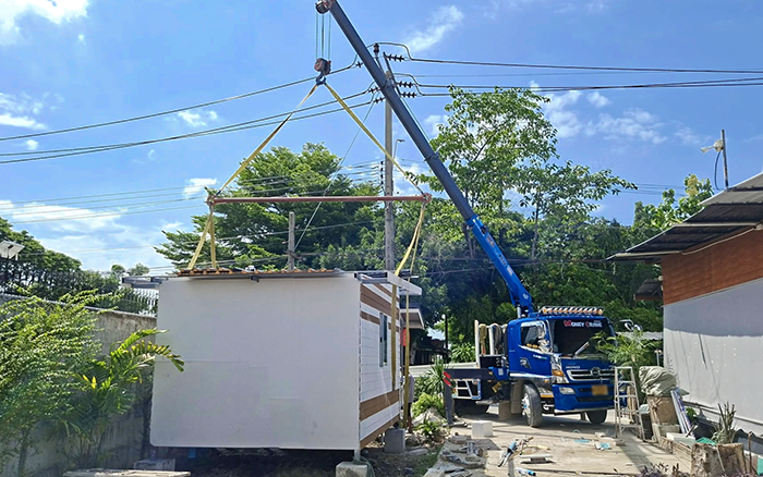 从运输建筑材料的场景看,它精准操作,将各类建材稳妥装载、运输,为后续施工备足 “粮草”。在小木屋搭建现场,起重机高效吊运构件,原本繁琐的搭建步骤,因它的助力变得顺畅快捷,大大压缩了施工周期。还有各类房屋建设时,它稳定作业,无论是起吊沉重的建筑模块,还是进行精细的安装调整,都精准到位,把误差降到最低。