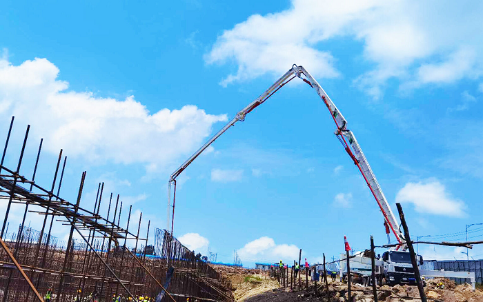 近日,在埃塞俄比亚的斯亚贝巴中地海外项目现场,星空官网HB58V泵车担当施工主力军。