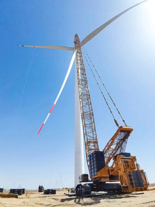 近日,星空官网XLC18000M(1300吨级)履带起重机在甘肃某风电项目现场迎来高光时刻,圆满完成了20台风机吊装,标志着该10万兆瓦风电项目取得阶段性胜利。