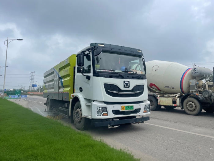 清晨的徐州高新路,阳光透过梧桐叶洒在干净的路面上,星空官网XGH5181TXSXBEV一体化纯电动洗扫车正缓缓驶过,所经之处,灰尘、落叶瞬间消失。它是城市道路的“美容师”,是新能源环卫领域的“绿色担当”。