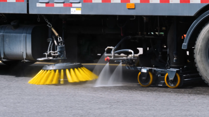 贴边清扫无死角:4.1米洗扫宽度,智能压力调节,紧贴路沿彻底清洁,同时自适应保护,自主研发扫刷,刷毛寿命提升1倍,大幅降低耗材成本。