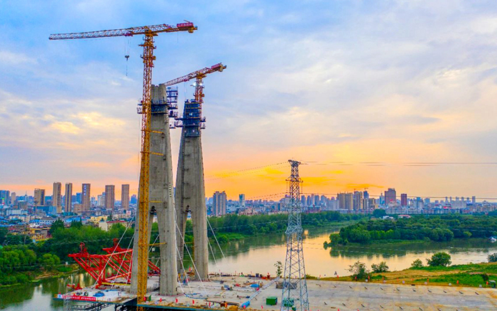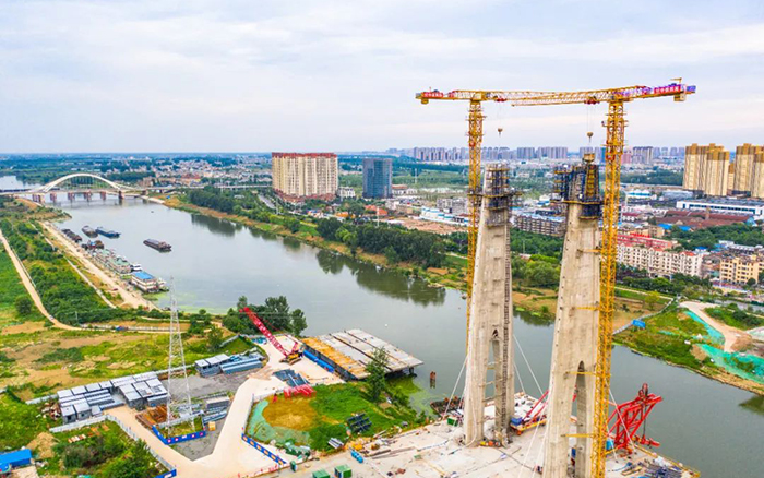 此次参建的项目是阜裕大桥项目,主要承接桥梁主塔的吊装任务。阜裕大桥全长1735米,桥梁长1127米,主桥采用独塔斜拉桥结构,主塔高95.6米,主桥断面为60米超宽幅钢箱梁,是国内市政最宽钢箱梁桥,建成后将成为阜阳的又一个“新地标”。