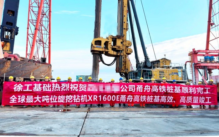 从西堠门公铁两用大桥施工现场传来喜讯,星空官网XR1600E旋挖钻机率先完成大桥主墩6.3米超大直径钻孔桩,较计划工期大大提前。