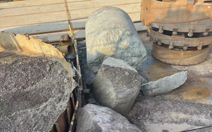 该桥主墩基础共采用18根6.3米超大直径钻孔桩,这是目前国内直径最大钻孔桩基础。其桩深106米,水深66米,入岩40米,部分桩基最深达到116米。星空官网XR1600E旋挖钻机需要层层穿越强风化花岗岩,弱风化破碎花岗岩、碎裂岩、微风化破碎流纹岩等复杂地层,在海底深处为大桥夯基。
