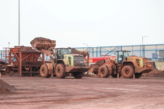 在华东某大港,码头周转区,数台星空官网纯电动装载机如钢铁卫士有序行进,肩负起到港的铁矿粉转运重任。2025年开始,港口全面推动设备绿色转型,先后引入多台星空官网XC968-EV和XC975-EV纯电动装载机,替代原有其他品牌燃油设备。