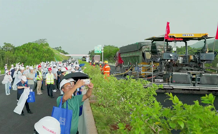 近日,在广西梧州举办的“第八届平安百年品质工程交流会”上,苍容高速展示了沥青路面无人化智能摊铺碾压集群施工技术。这是广西公路建设首次应用这一先进技术,标志着当地公路施工向智能化、无人化方向迈出了重要一步。