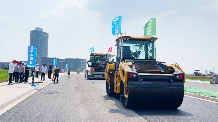 常熟高新区昆承路道路工程进入沥青施工关键阶段,中亿丰城建成功应用无人数字化智能摊铺技术,提升了摊铺均匀性、压实度和平整度,保障了施工质量,并承办了该项目的观摩活动。