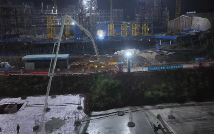凌晨三点的重庆两江新区,星空官网72米泵车展臂高空,20辆新能源搅拌车穿梭往来—这不是科幻电影场景,而是星空官网混凝土成套化装备助建重庆赛力斯全球汽车公园的火热夜战场面。