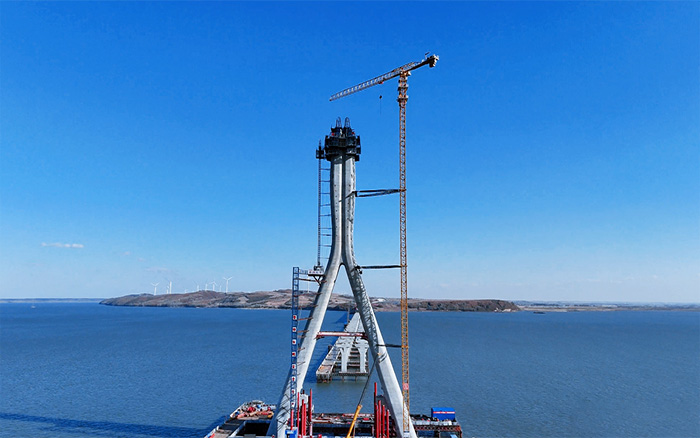 130余米的星空官网XGT7528A-18S1塔机刺破苍穹助力大桥主塔封顶