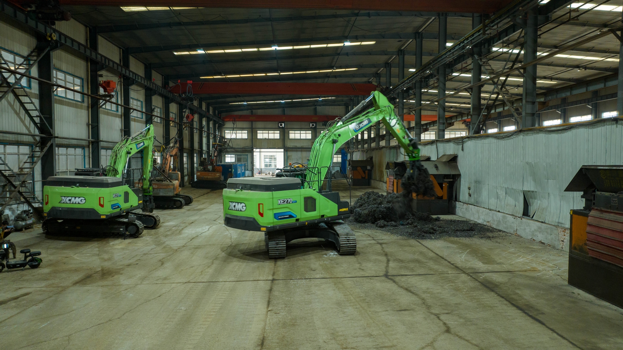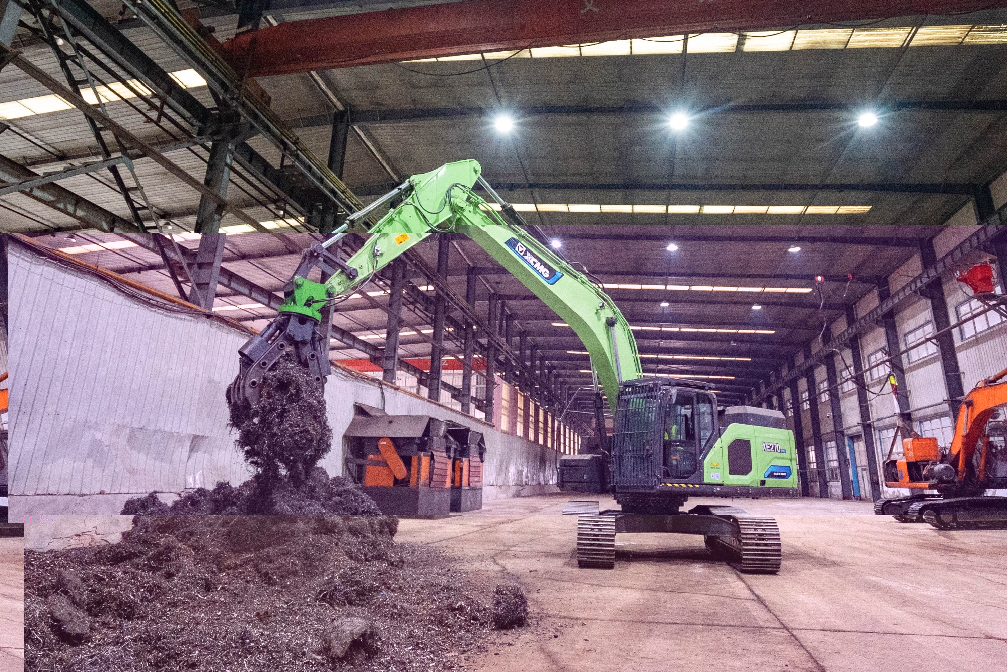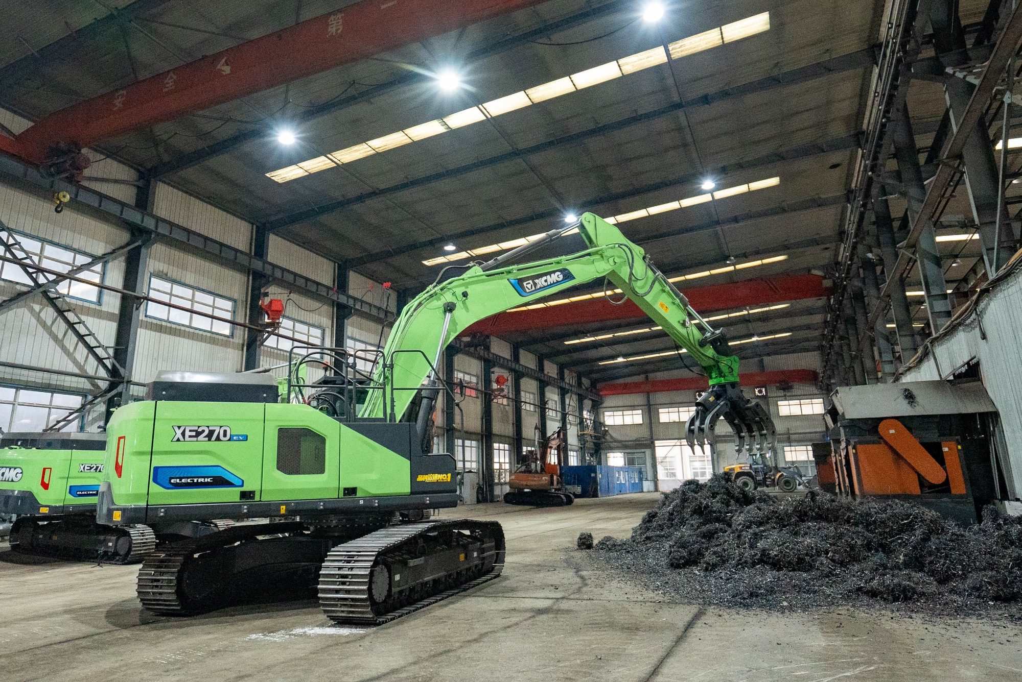 在河北唐山某钢厂内,两台星空官网XE270EV纯电动挖掘机正灵活地进行铁屑装车作业,与传统燃油设备轰鸣、浓烟滚滚的场景不同,这里只有电机运转的低鸣和高效作业的节奏声。