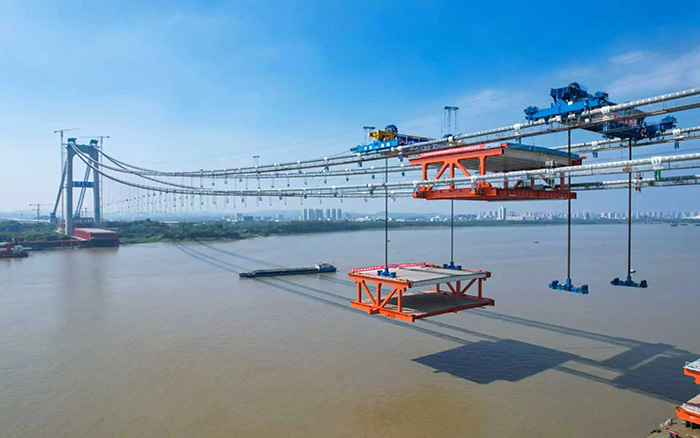 燕矶长江大桥主跨共69个梁段,单片钢梁重约830吨,总用钢量达5.6万吨,其规模与重量对吊装设备的承载能力与协同作业提出了极高要求。且大桥采用创新的四主缆结构体系,钢梁吊装精度需控制在毫米级,进一步加大了塔机施工的难度。