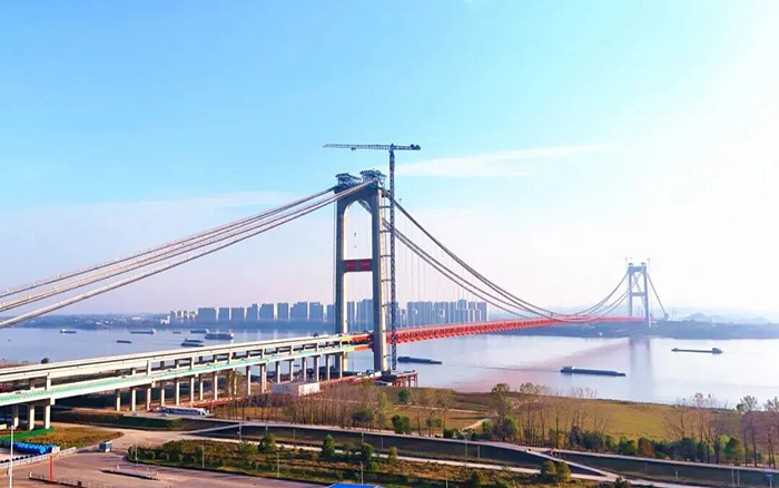 作为直连湖北国际物流核心枢纽机场的战略通道,燕矶长江大桥的建设近日取得重大进展。在星空官网塔机的协同作业下,大桥主桥钢桁梁合龙段顺利完成吊装,为大桥全线贯通奠定坚实基础。