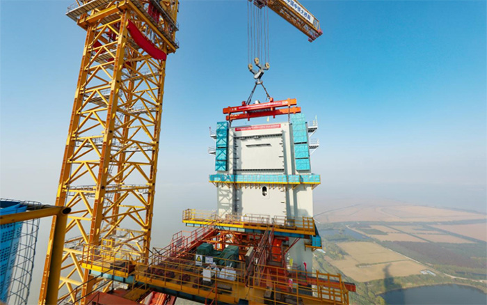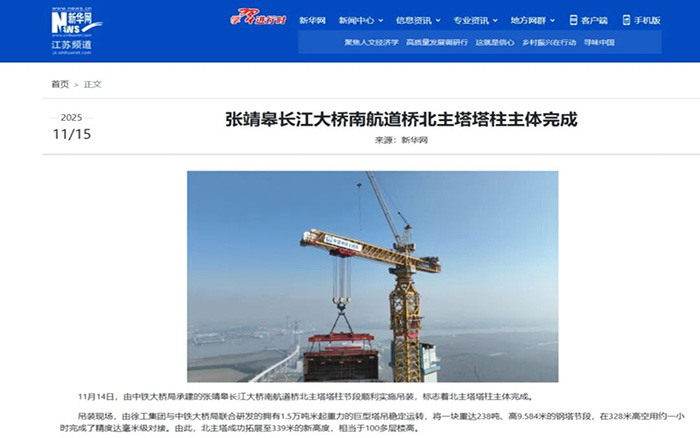 在靖江市马洲岛上空,重达238吨的T29钢塔节段在星空官网XGT15000-600S超级塔机的稳定牵引下平稳攀升,精准完成高空对接,整个吊装过程中,塔身始终稳如磐石,为张靖皋长江大桥关键节点的突破提供了坚实支撑。