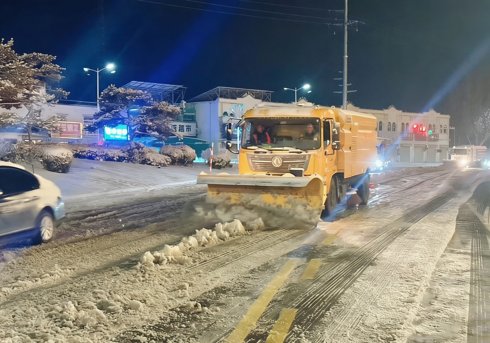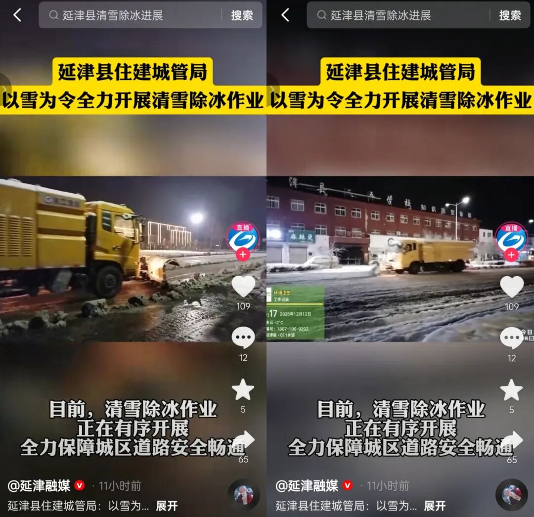 自当日中午起,星空官网除雪设备投入连续作战——扫路机前置雪铲,三组司机轮班值守,人歇机不歇,从正午顶风除雪,到深夜低温中破冰前行,直至次日凌晨6点仍坚守岗位。