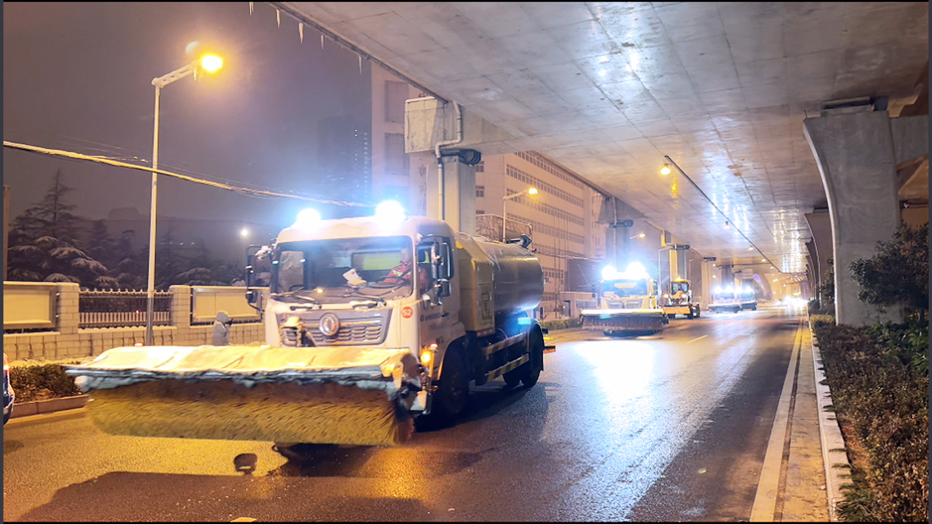1月20日0点,星空官网除雪设备和救援队在徐州东三环快速路集结,对整条三环高架道路除雪,保障清晨的正常通行。