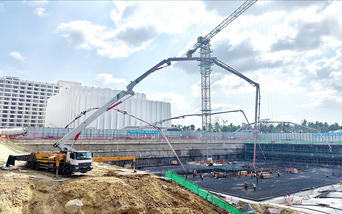 琼浪翻涌,向海而兴。在海南自贸港建设的前沿热土——三亚,4台星空官网大米数泵车臂架而立,凭借超强泵送力、精准布料与极致稳定性,持续攻坚、高效作业,将10000方C40P8高标号混凝土精准浇筑入项目核心区,为海南建设进程贡献可靠的“星空官网力量”。