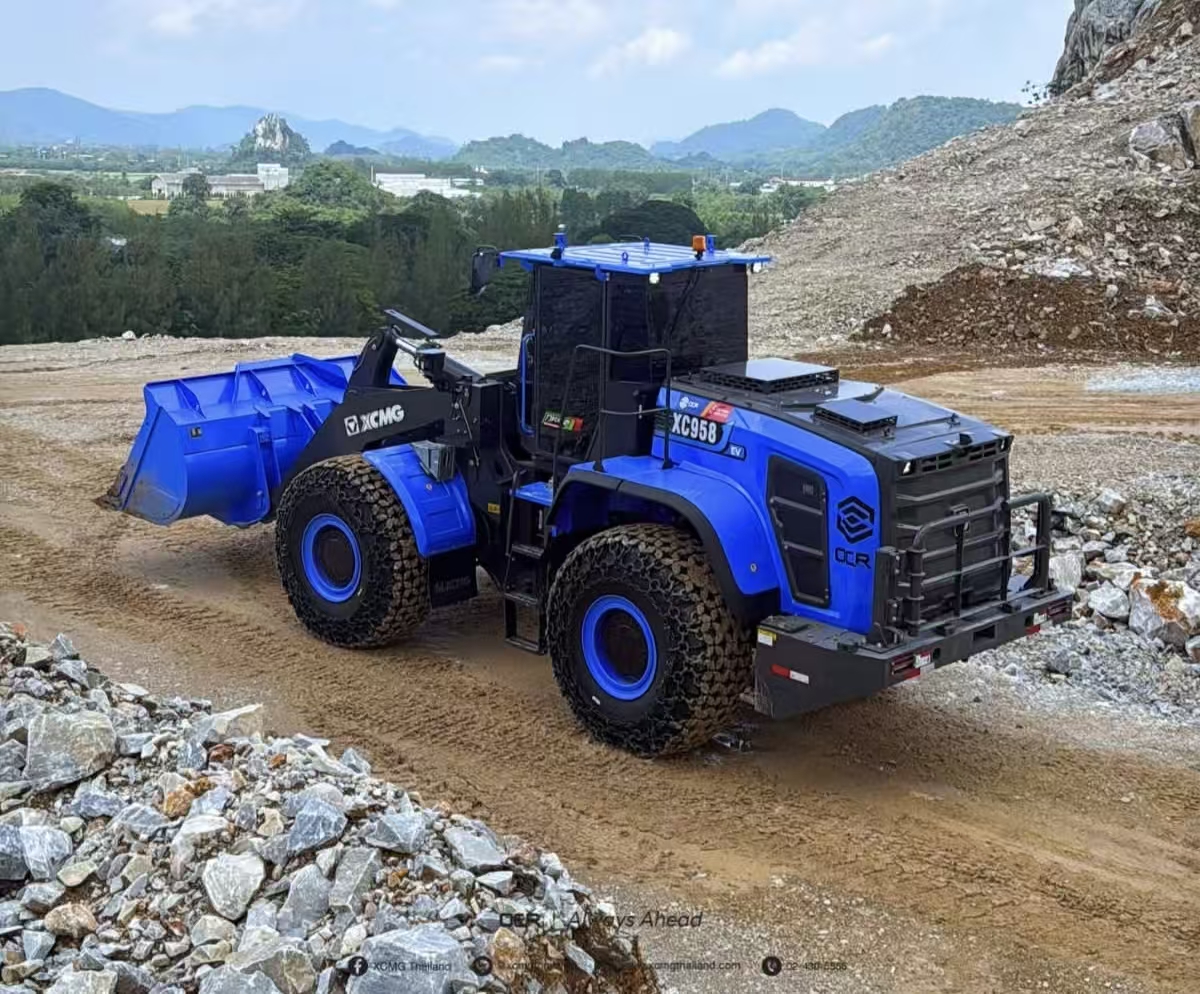 针对重载工况研发的纯电动产品,XC958-EV并非燃油车的简单替代。“三电机”无变速箱核心技术、三电系统与液压系统深度匹配,确保在石料铲掘、重载爬坡等高频场景下动力输出强劲且耐久。面对东南亚地区雨季,双行走电机智能耦合,协同作业,湿滑泥泞、坡大崎岖的山路亦可稳步向前。与此同时,高效能量回收技术将制动与下坡势能转化为电能,进一步延长单次充电连续作业时间。